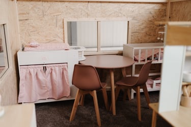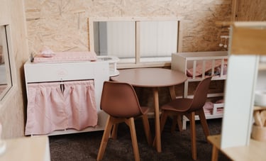 Mitten im Gewerbegebiet in Kürnach bieten wir auf 140 m² einen liebevoll gestalteten Raum für Familien mit kleinen Kindern – zum Spielen, Entspannen und gemeinsamen Genießen.